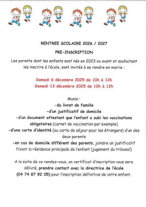 Les parents dont les enfants sont nés en 2023 ou avant et souhaitant les inscrire à l’école, sont invités à se rendre en mairie :